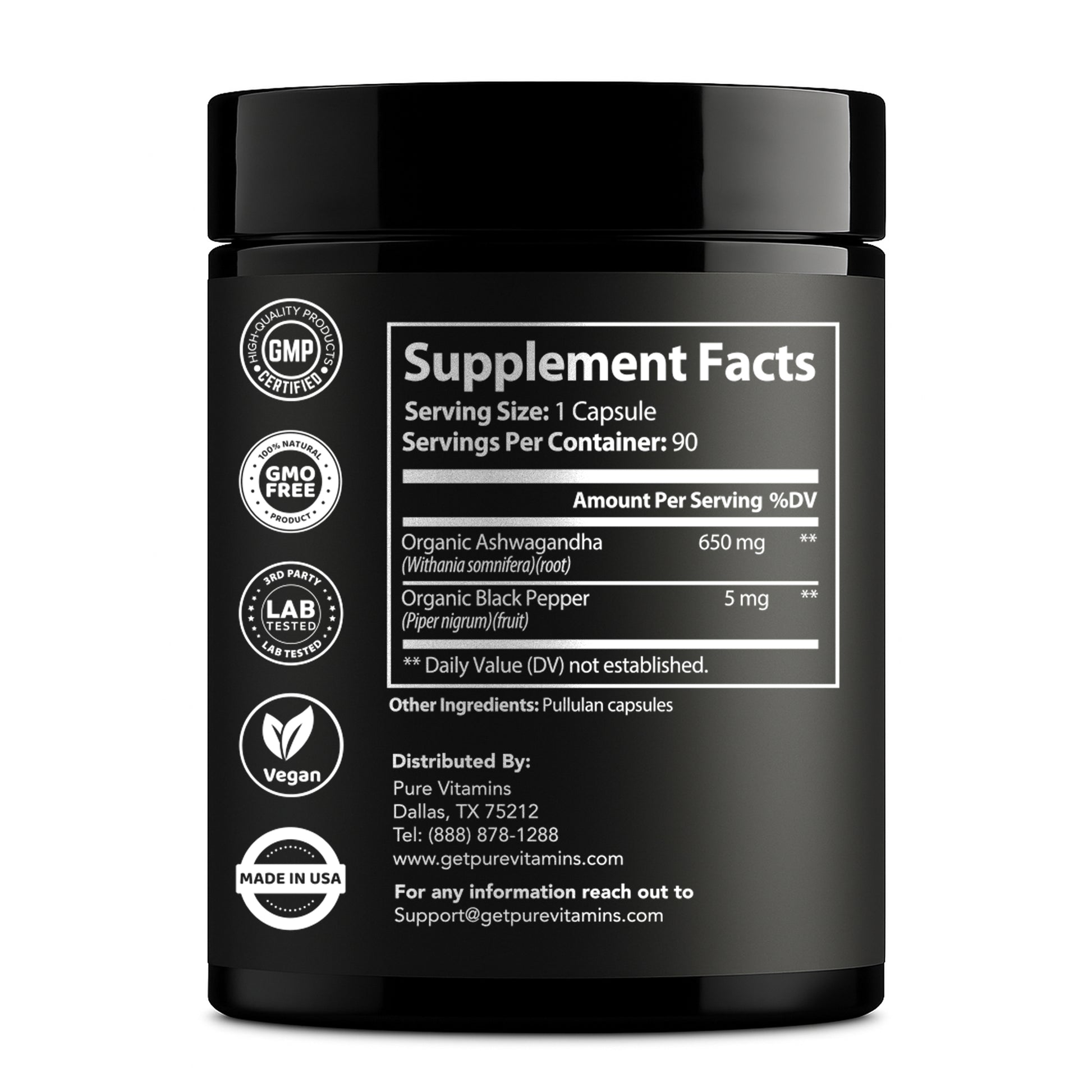 - Premium Ashwagandha Blend: Pure Vitamins introduces natural ashwagandha root extract dietary supplement capsules, expertly blended with black pepper extract to enhance absorption and bioavailability, ensuring you get the maximum benefits in every dose. Experience the potency of this premium combination of ashwagandha black pepper designed to support your overall wellness and vitality.